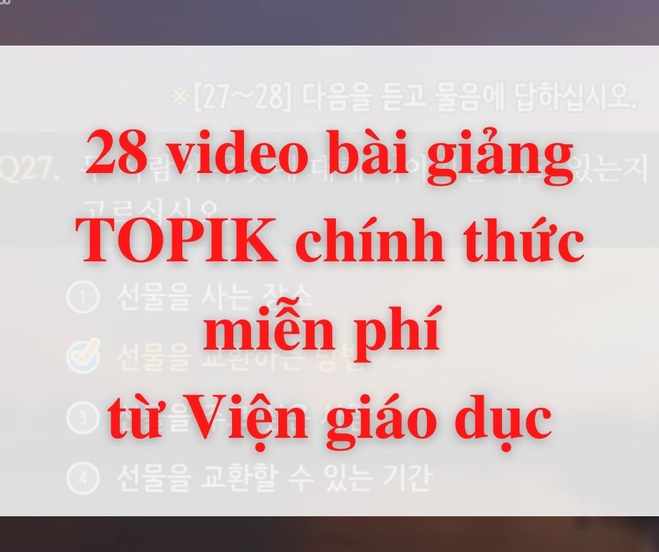 28 video bài giảng miễn phí được chính Cơ quan tổ chức kì thi TOPIK đăng tải, nhằm giúp các bạn thí sinh ôn tập tốt cho kì thi. Hoàn toàn miễn phí, các bạn vào xem nhé~