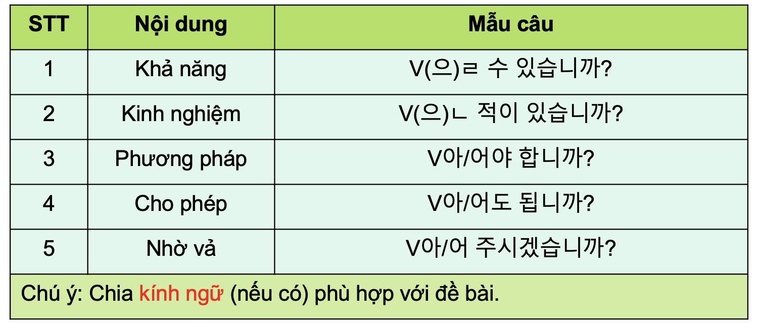 Bí kíp: Khi luyện viết, hãy viết luôn theo các mẫu câu viết topik câu 51 thường gặp đã chia ở dưới dạng 습니다 luôn thì bạn sẽ quen tay và quen luôn cả câu để điền đó.