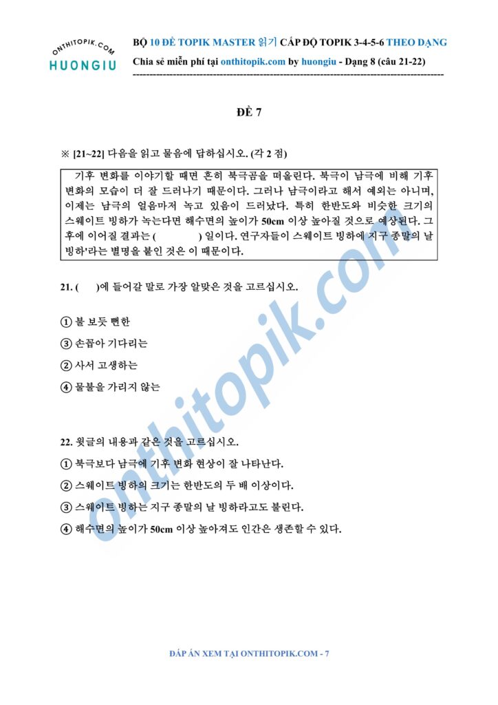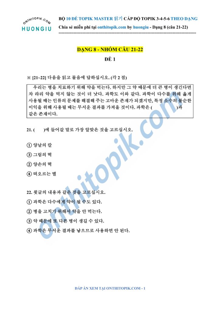 Click để xem đáp án TOPIK MASTER DẠNG 8 (câu 21-22)
