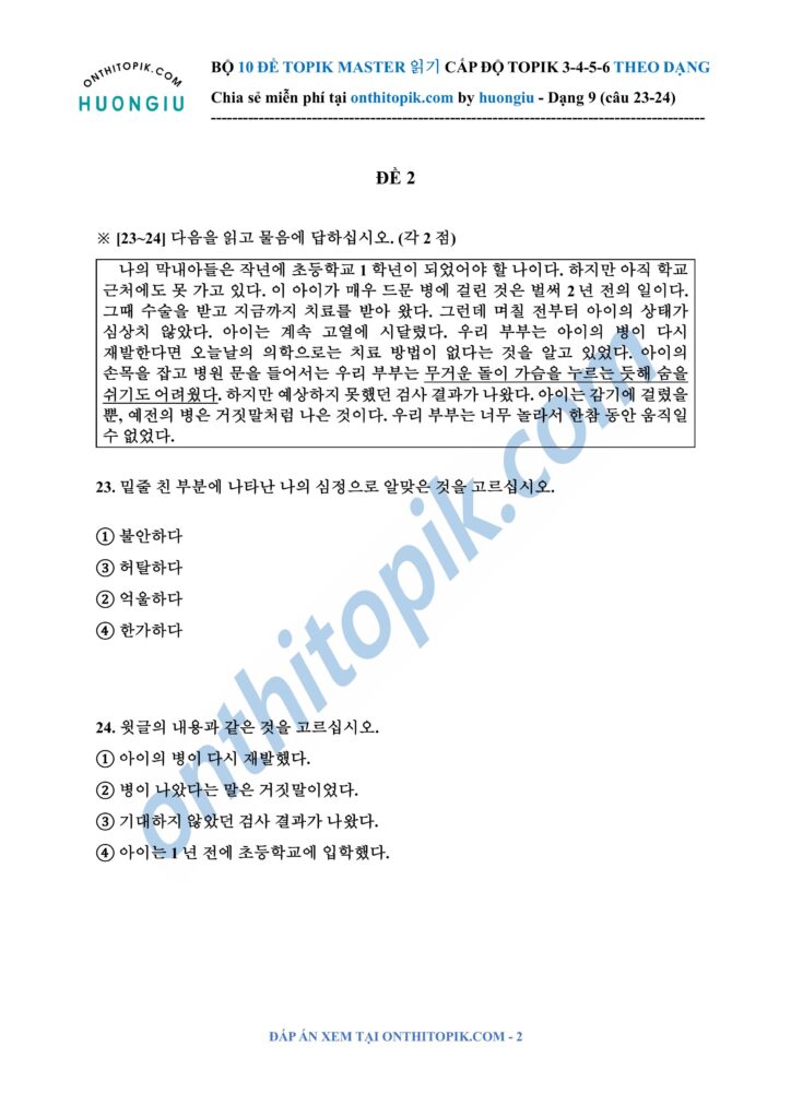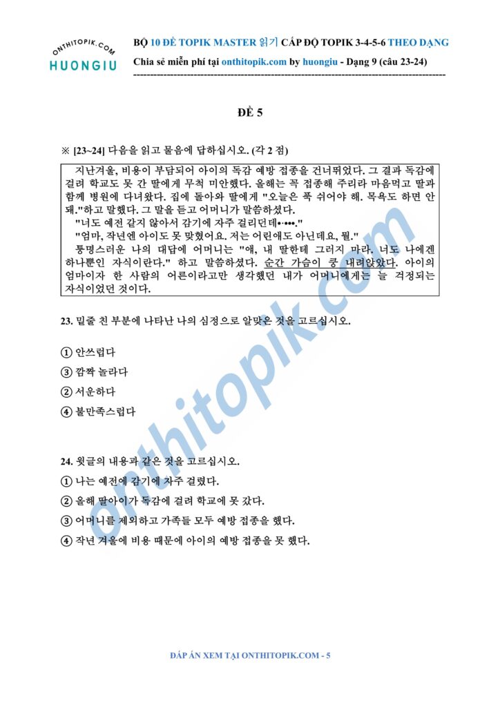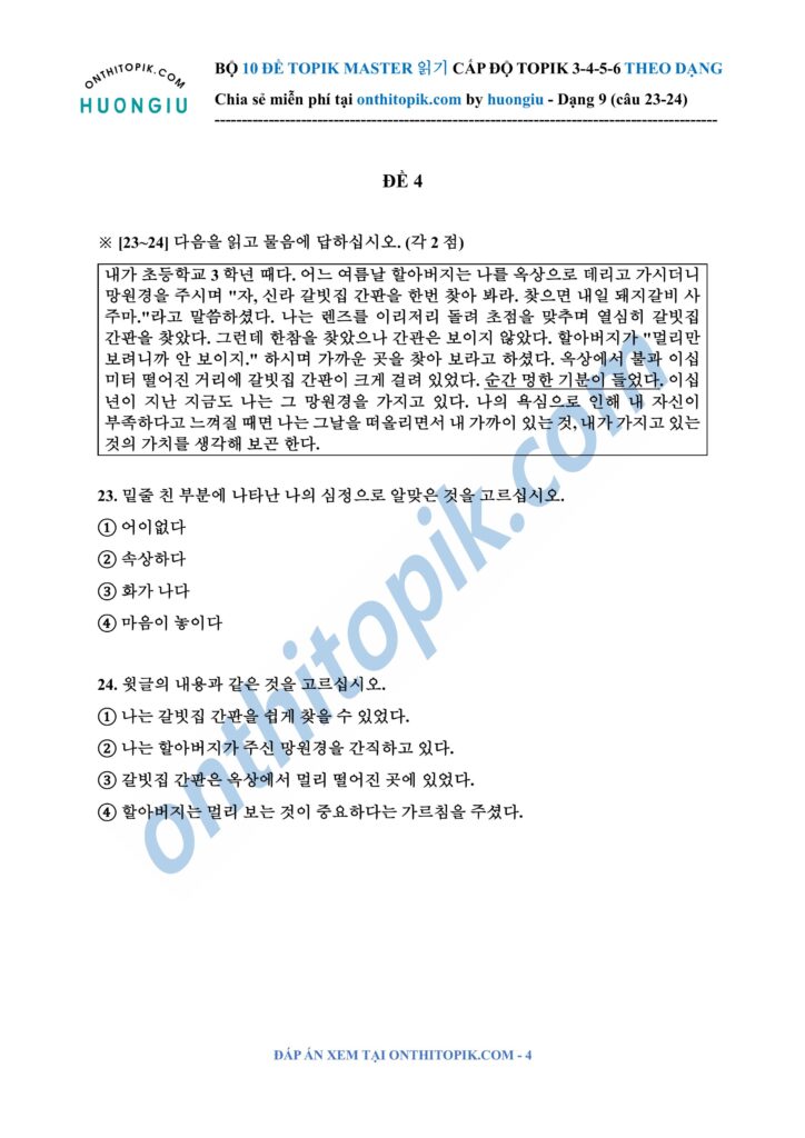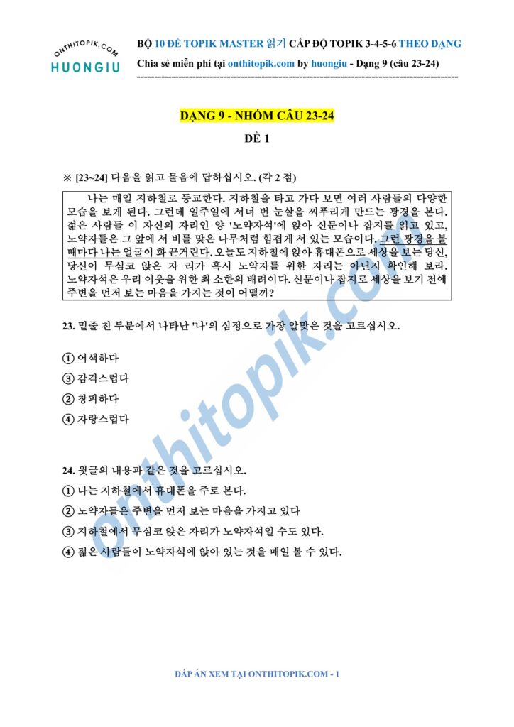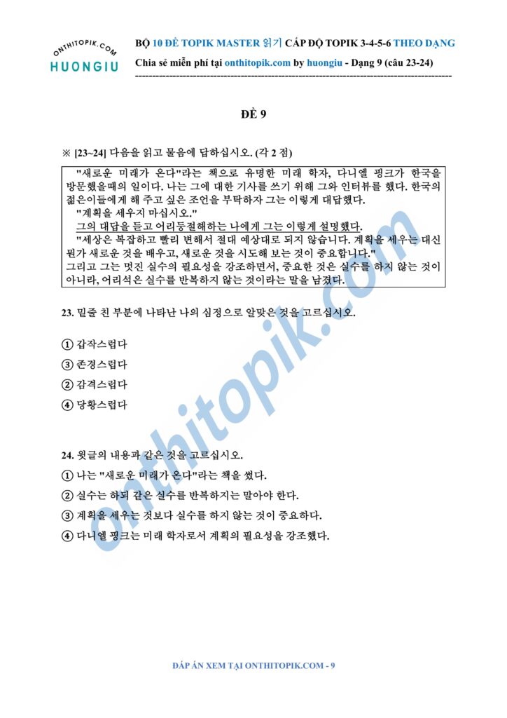 Click để xem đáp án TOPIK MASTER DẠNG 9 (câu 23-24)