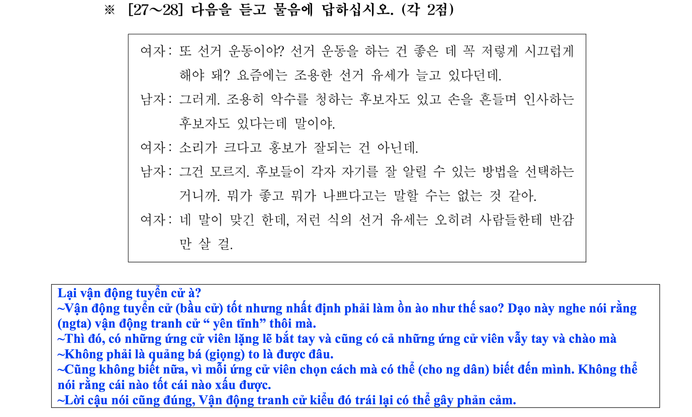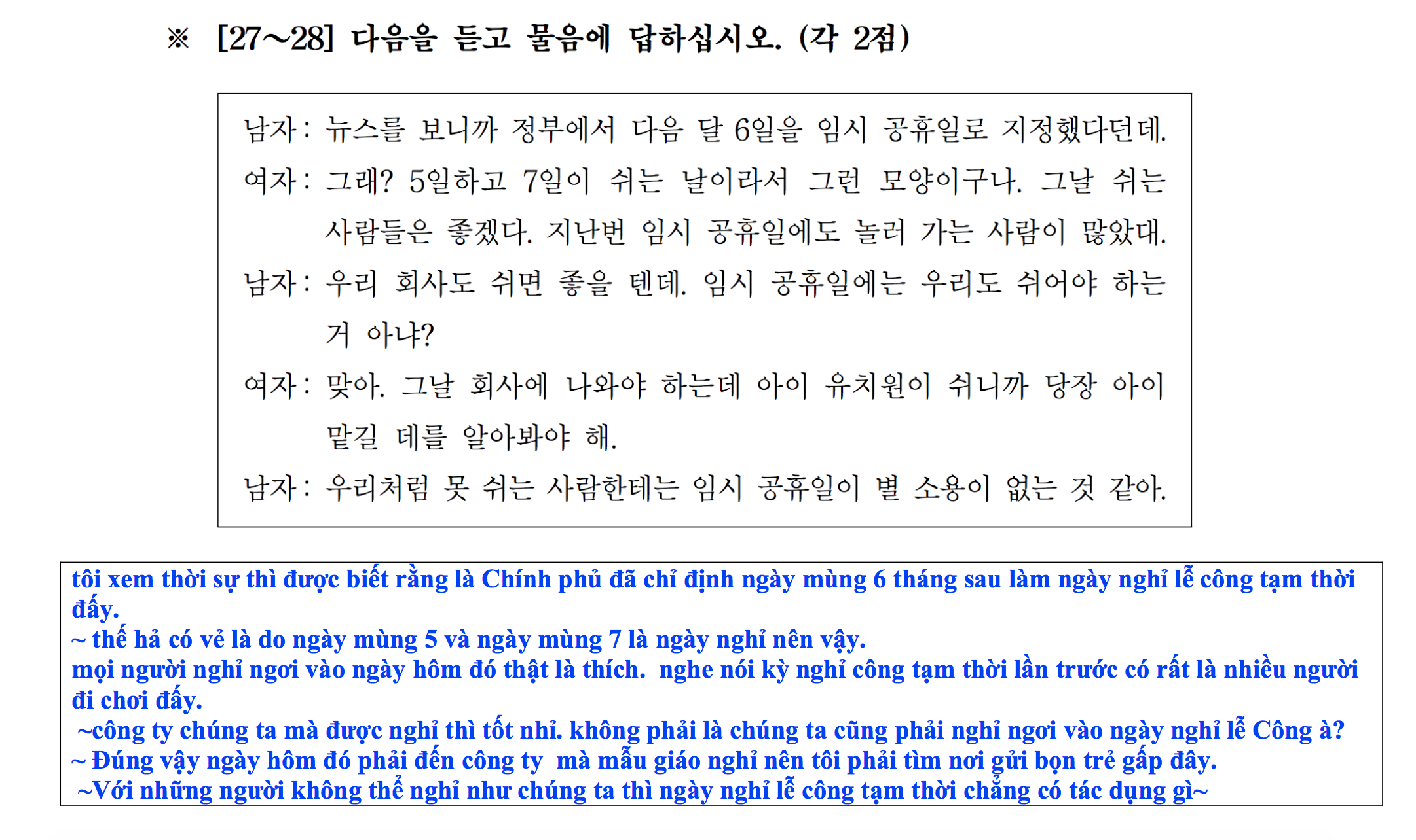 3. Chữa nghe 듣기 TOPIK II câu 27-28 TOPIK 37