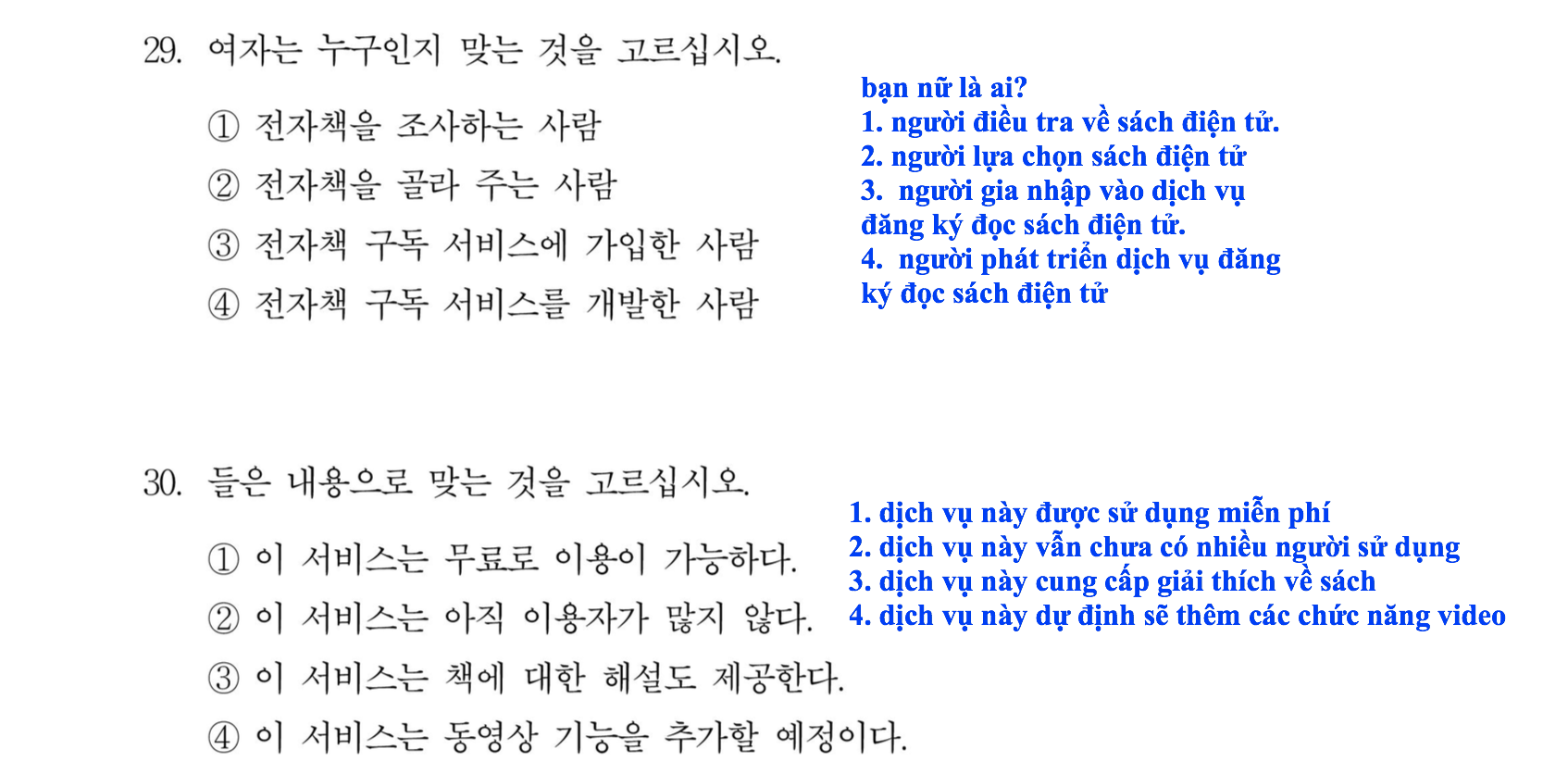 Chữa chi tiết 듣기 TOPIK II dạng 10 [câu 29-30]