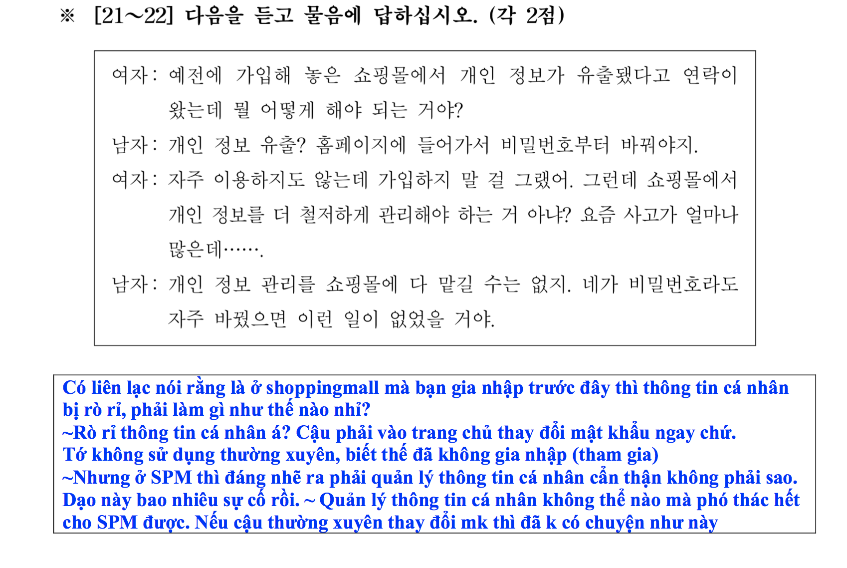 Sau đây mình sẽ tổng hợp các bài dịch nghe TOPIK II theo dạng 6 (nhóm câu 21-22) đã trình chiếu tại youtube huongiu.