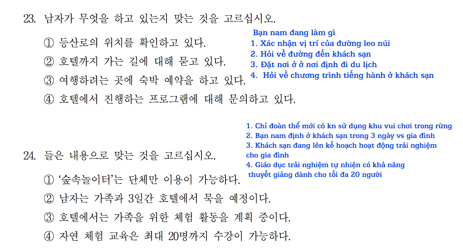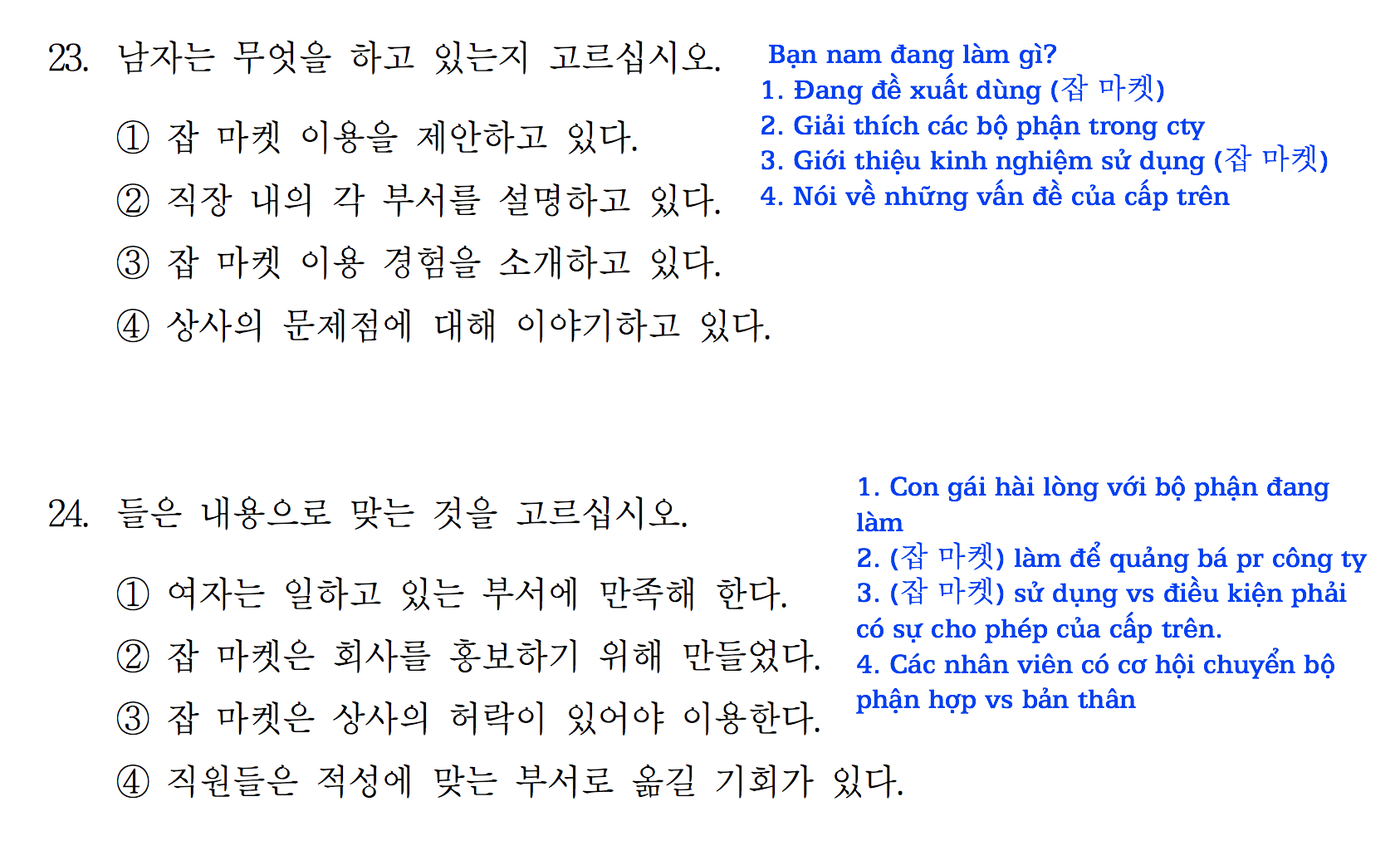 3. Chữa nghe 듣기 TOPIK II câu 23-24 TOPIK 37