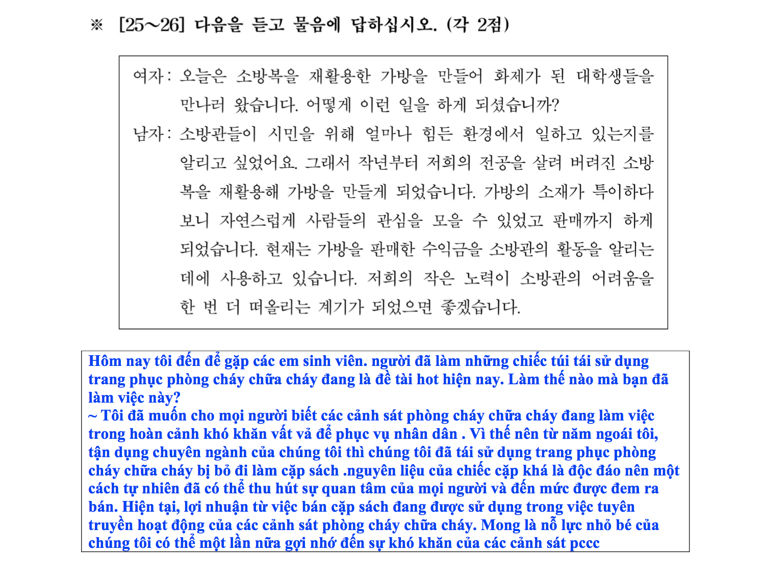 Lần lượt 8 đề TOPIK 듣기 NGHE CÂU 25-26 như dưới đây: