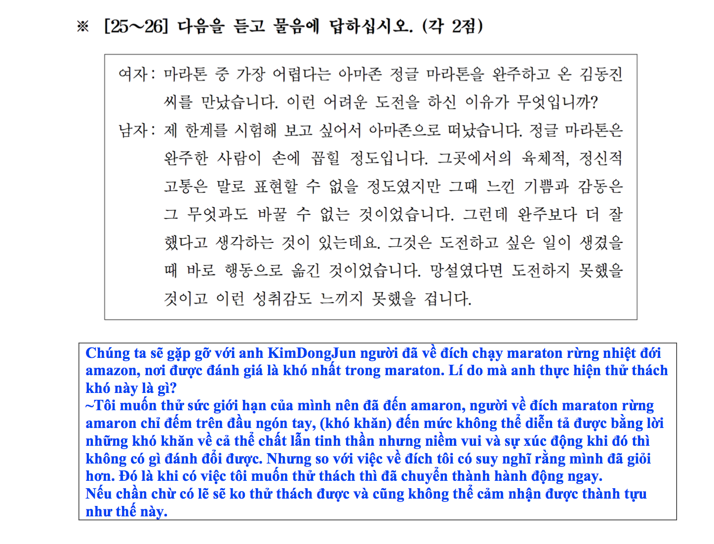 Chữa bài nghe TOPIK II 듣기 full 50 câu tham khảo tại onthitopik.com
