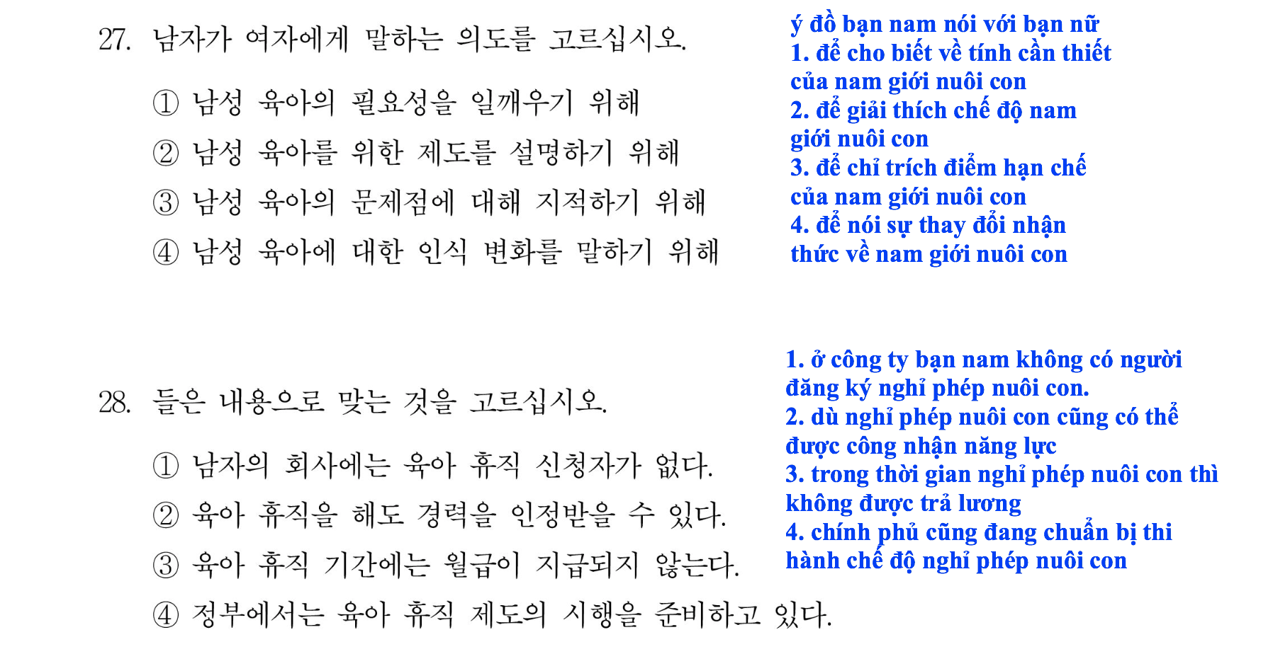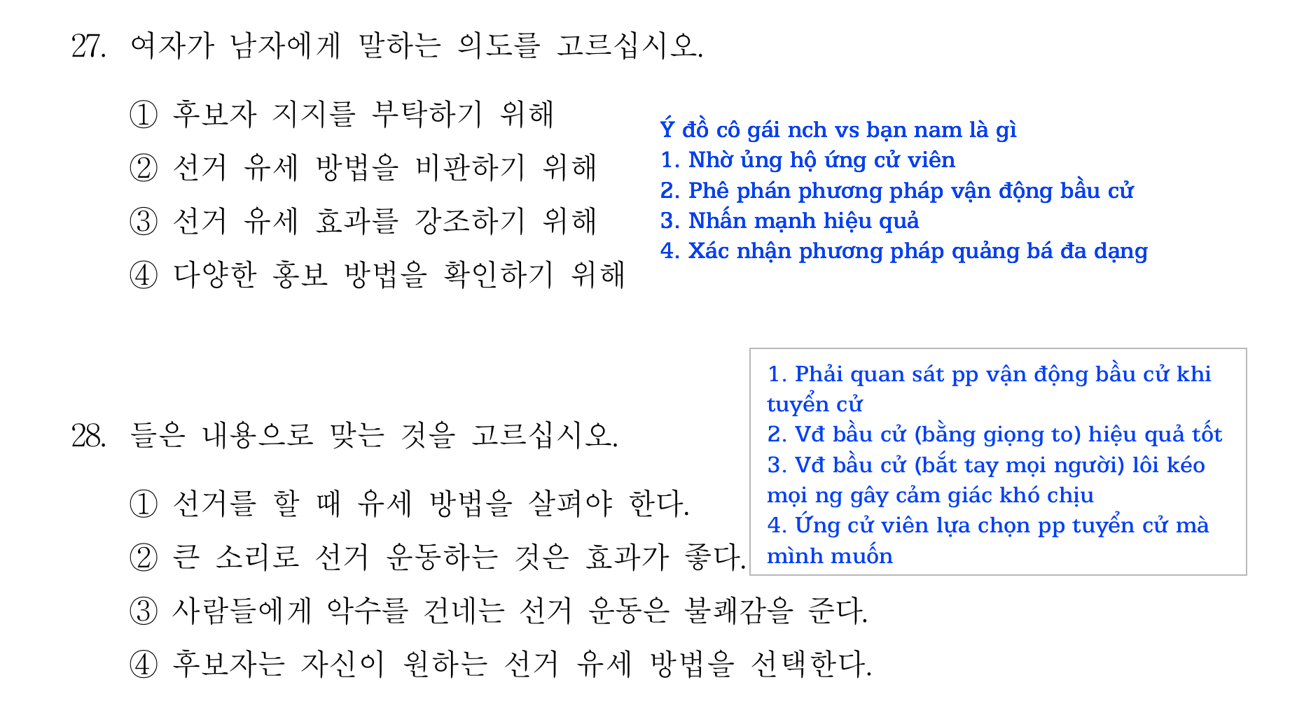 Sau đây mình sẽ tổng hợp các bài dịch nghe TOPIK II theo dạng 9 (nhóm câu 27-28) đã trình chiếu tại youtube huongiu.