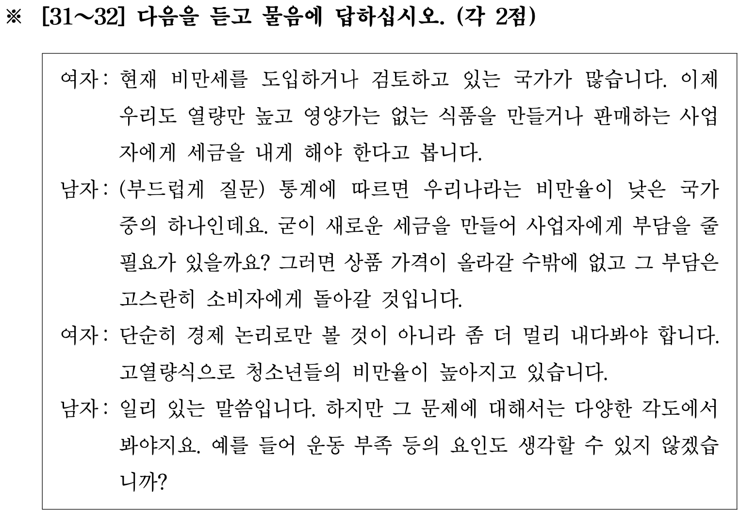 Đề bài nghe TOPIK 36 câu 31-32 như sau: