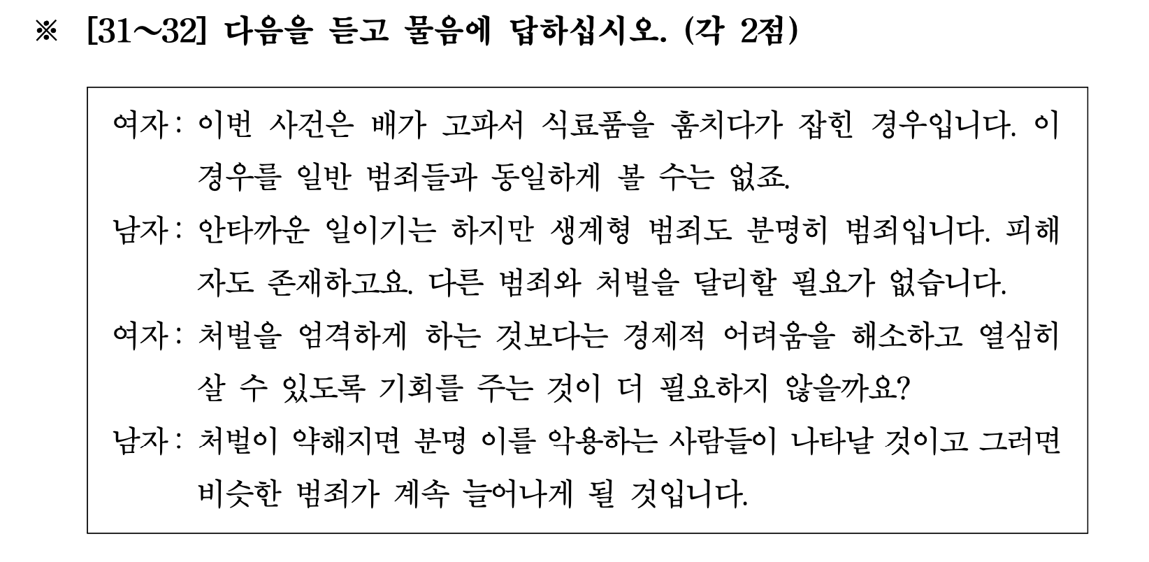 Đề bài nghe TOPIK 60 câu 31-32 như sau: