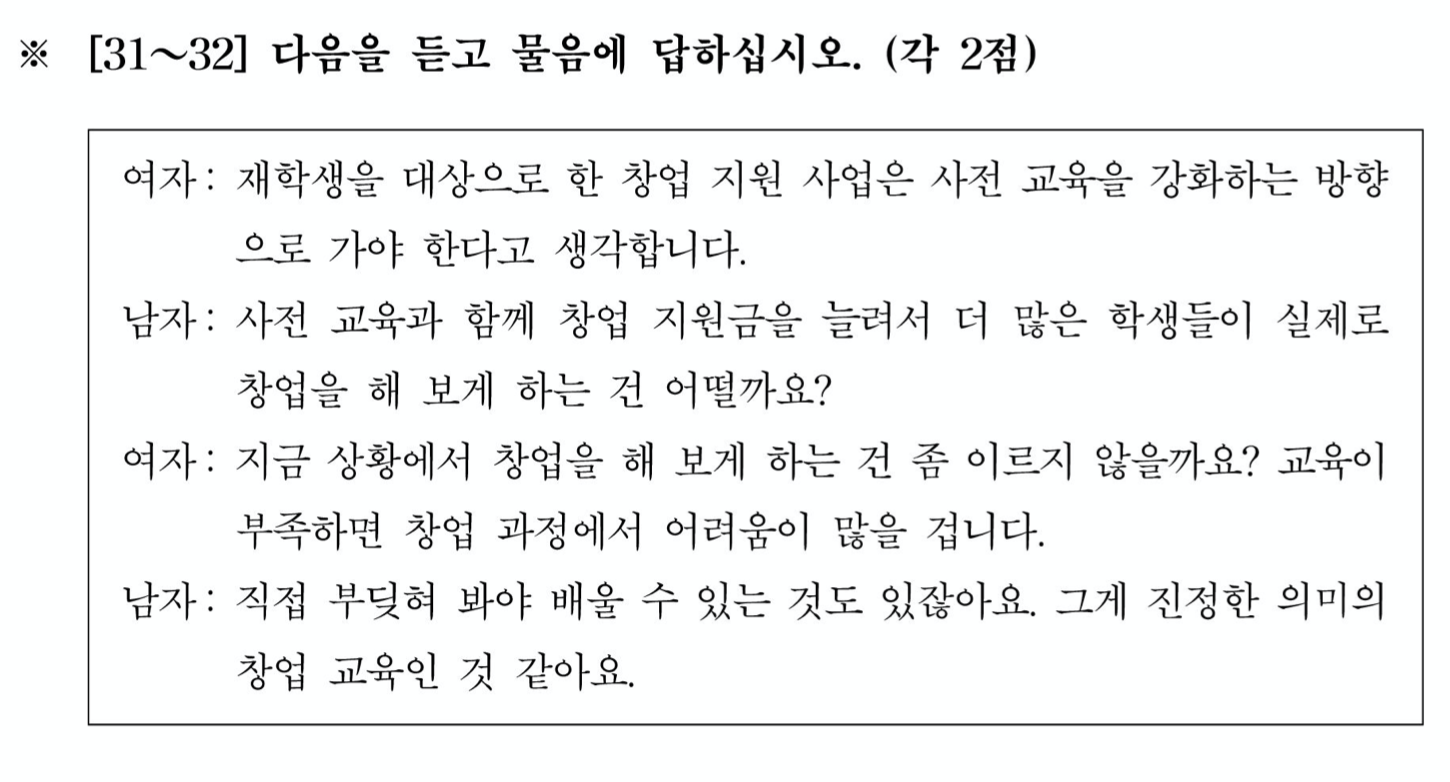 Đề bài nghe TOPIK 64 câu 31-32 như sau: