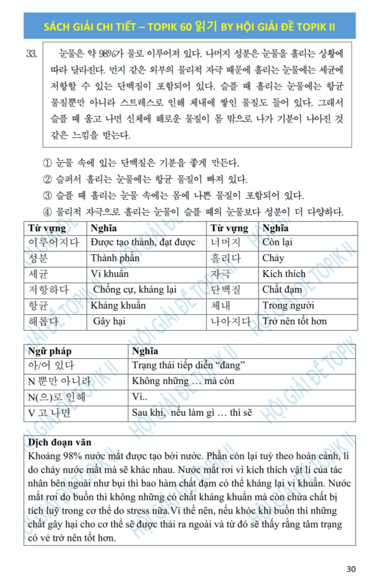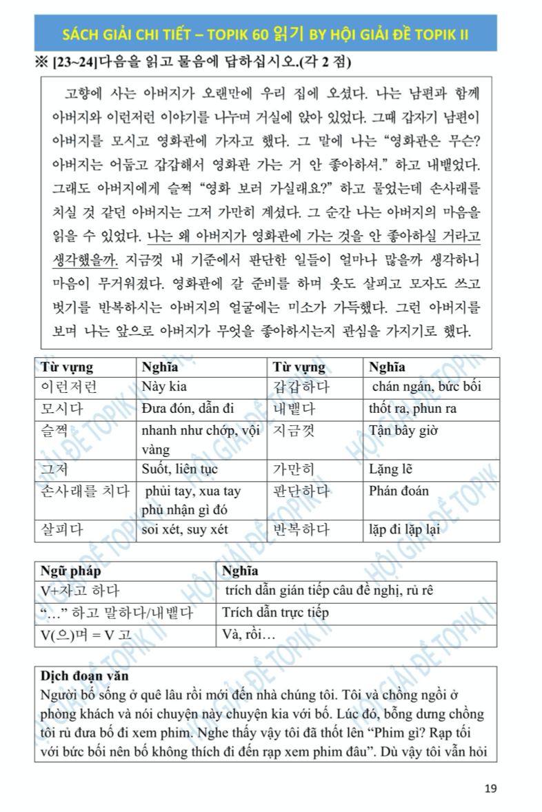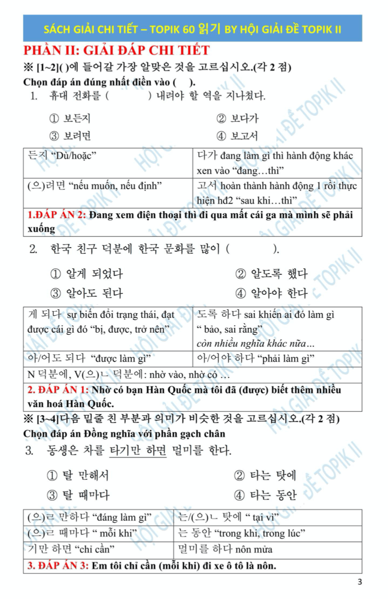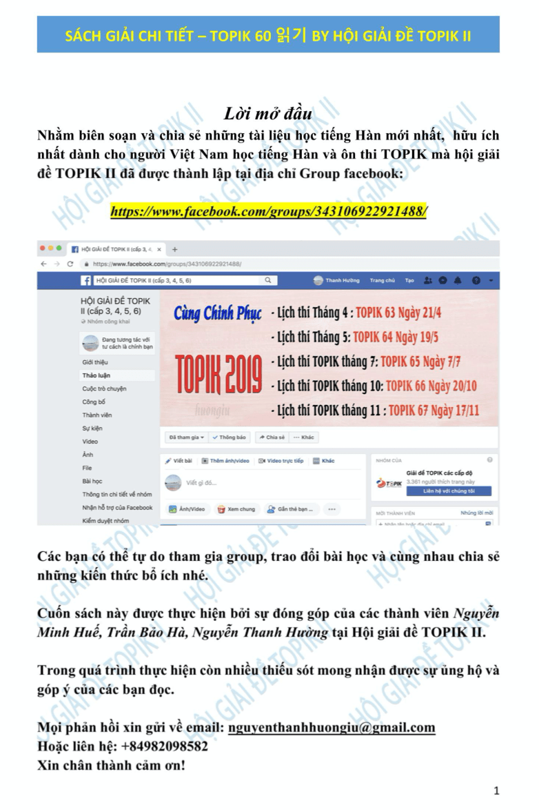 Ebook sách giải đề tiếng Hàn TOPIK 60 level II môn Đọc 읽기 do huongiu và các thành viên Hội giải đề TOPIK II thực hiện, chia sẻ download miễn phí cho các bạn tải đề thi topik về học nhé~