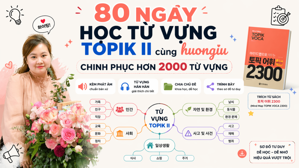 Tài liệu 80 ngày học từ vựng TOPIK II cùng huongiu được chia sẻ miễn phí tại youtube huongiu, các bạn hãy theo dõi và học từ vựng hàng ngày nha!