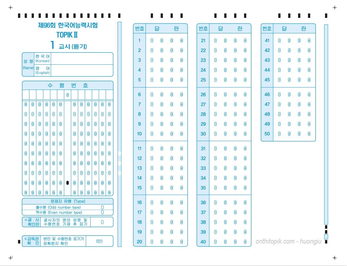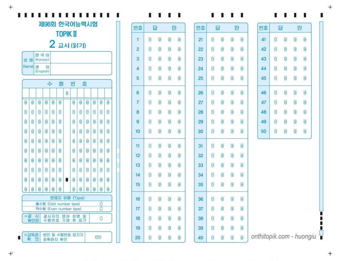 Link download tại đây: Mẫu giấy thi TOPIK mới nhất TOPIK 96