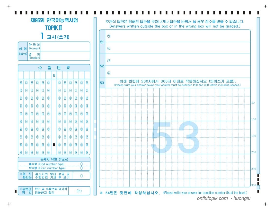 Khoan, nhưng mẫu cũ trông rõ nét hơn ấy, nếu thích có thể down tại đây Mẫu giấy thi TOPIK 53 nha~